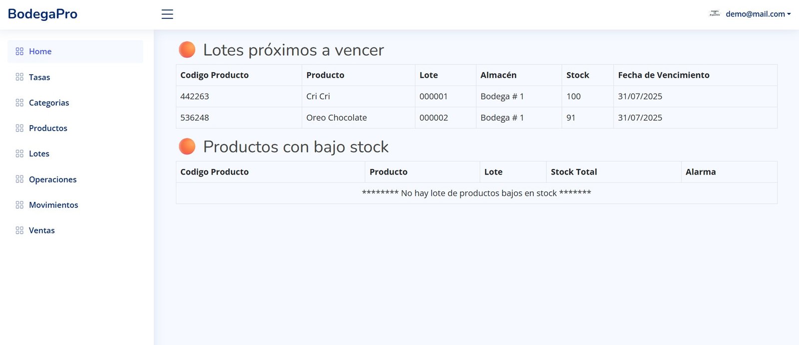 - Gestión de inventario en tiempo real (alertas de stock bajo).